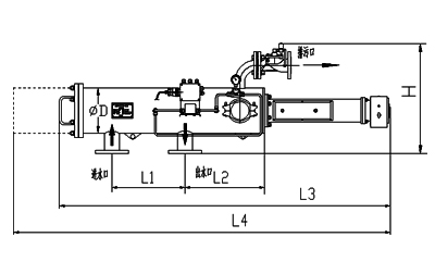 型號 | 管徑 | 出入水口 | L1 | L2 | L4 | d | 濾網面積 | 處理水量 | 重量 |