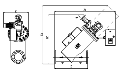 型號 | 管徑 | 出入水口 | Z | Z1 | Z2 | Z3 | K | 濾網面積 | 處理水量 | 重量 |